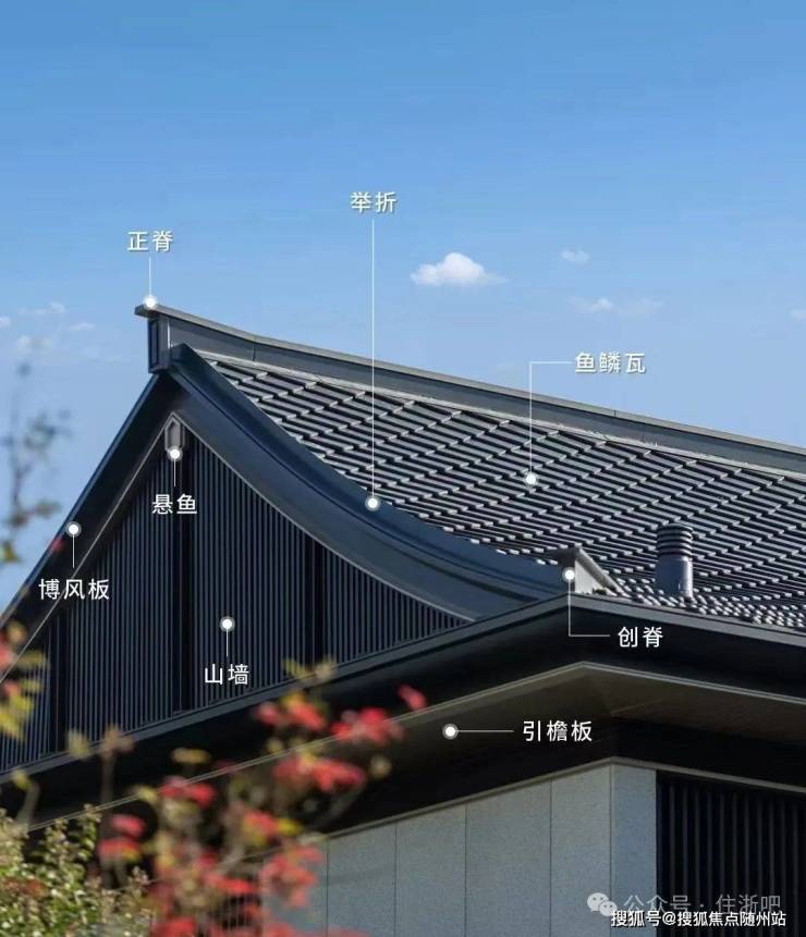在建筑营造上,由gad张微老师执笔,延续和家园“章法天成,自然而然”理念,玺园·山前取法宋代郭熙的“三远论”,运用石材、玻璃、铝板等材质的巧妙搭配,结合正脊、戗脊、博风板、悬鱼、鱼鳞瓦等经典元素,呈现虚实相生、平远雅致的经典立面。
