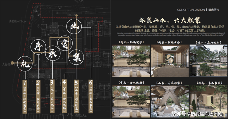 下沉式会所:茶室、会客厅、健身房环绕水院,乌篷船艺术廊亭点睛;