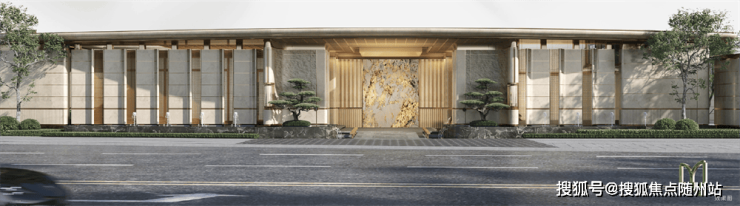 香槟金与米白铝板(石材)辉映,西高东低布局引景入室,成就迪荡湖天际线新封面。
