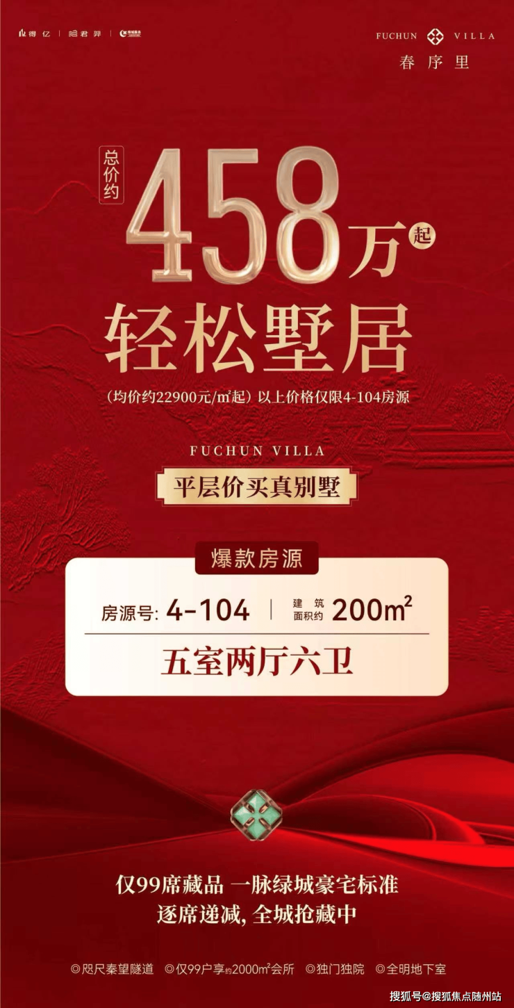 ✅🛑【总户数】:谨此99席,一江两岸惟此墅
