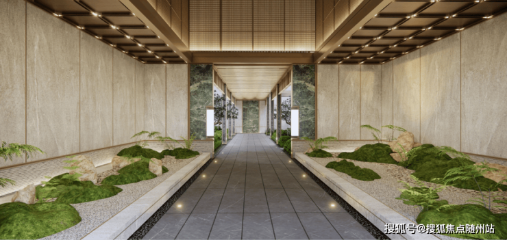 虽然体量不大,却舍得铺排气场。它定制了璞丽酒店式的长廊门庭,别的楼盘在拼门头宽度,它在营造归家的“纵深仪式感”。