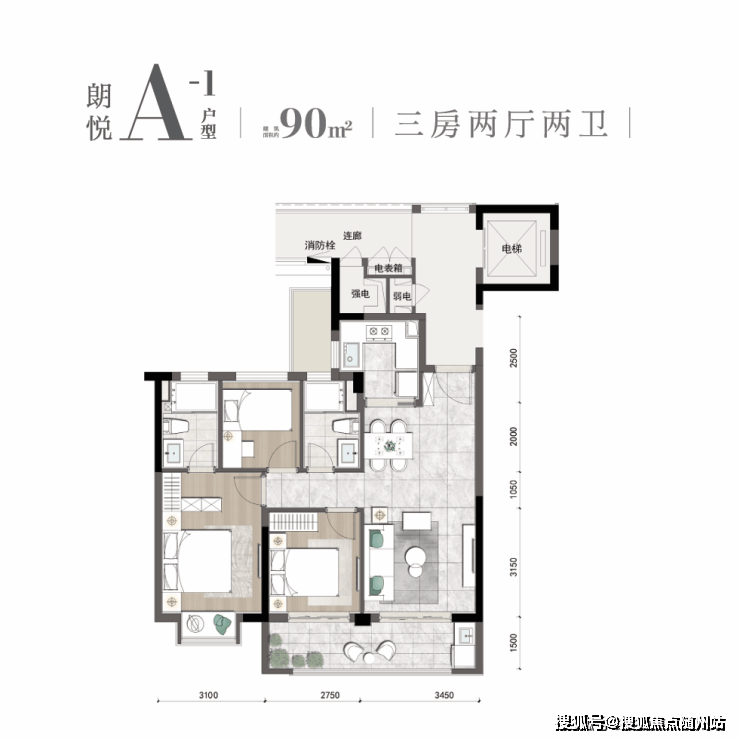 当然,其他的户型也是彩蛋满满,其中很受欢迎的建面约90㎡小户型,宽阔客厅、双阳台、双卫、主卧大套间设计,非常实用,过目难忘。