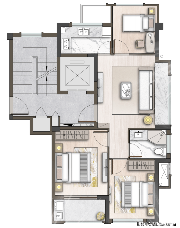同时,湖山一品更推出了市场上久违的建面约75㎡小户型,规制出2+1室客餐连厅,全亮布局,三面采光,南北均设置双阳台,客厅带近4米超阔观景飘窗,尽揽湖城园境;南向双卧,亲享轻柔阳光,而位于北面的多功能空间,可规划为书房、客房、茶室......完全具备三房功能。又是一个比手速的爆款!