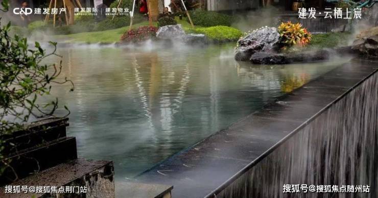 重头戏来了,碧水盈盈之下,建发顺势铺出一挂约13米宽、5米高的“沉林飞瀑”!