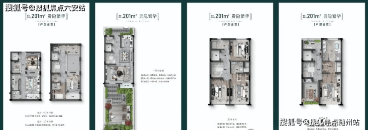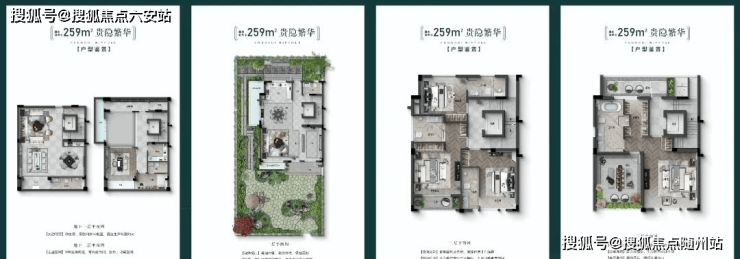 户型面积:联排别墅建面约201~259㎡,洋房建面约119~138㎡