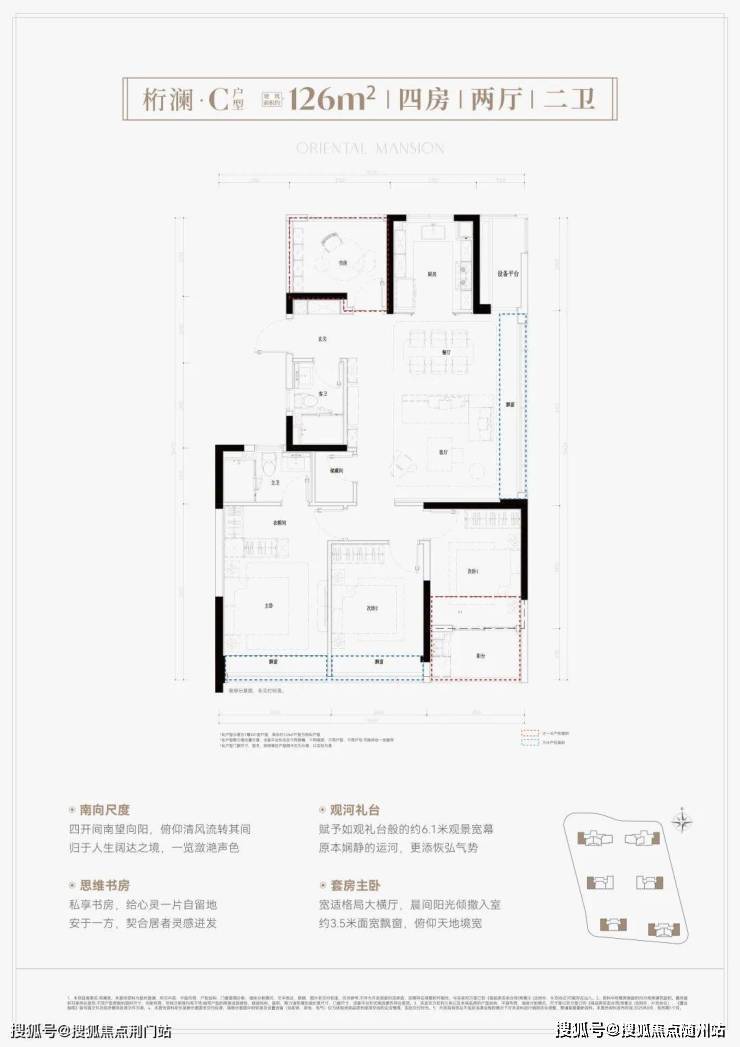 建面约126方4房2卫,270°稀缺边套四房