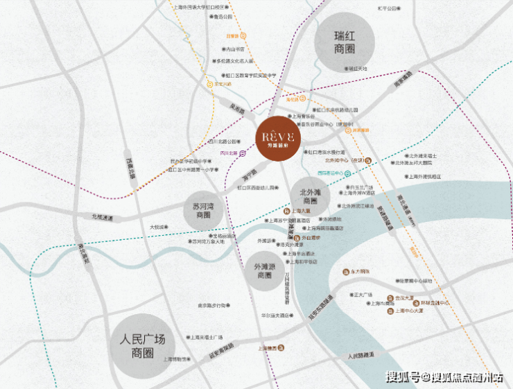 商圈叠加:南京东路-外滩商圈、人民广场商圈、苏河湾商圈、北外滩商圈、瑞虹商圈环绕叠加