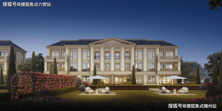建筑整体采用对称造型,孟莎式斜坡屋顶、宝瓶栏杆等法式经典元素点缀其间,呈现出庄重大方的视觉效果。在选材上,项目不惜成本,选用白麻石材作为外立面主材,这一选择与杭州顶尖奢宅“湘湖壹号”的用材标准看齐,确保了建筑历久弥新的品质感。