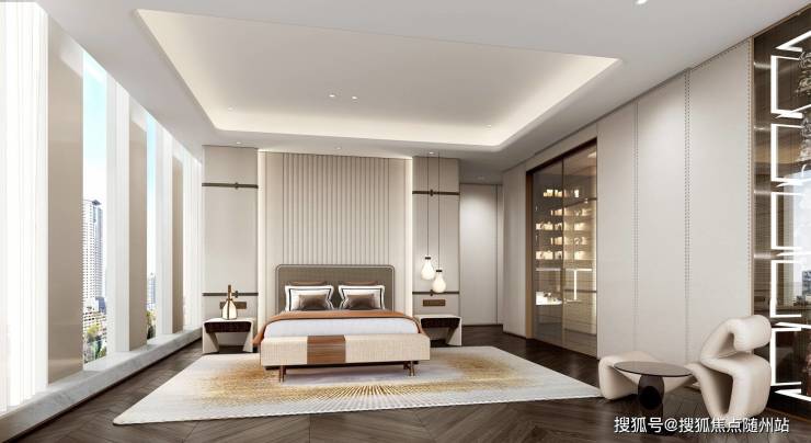 室内设计上,采用LDK一体化设计,带来极具阔正的空间尺度,并以大面米灰、暖灰为主基调,营造出高级优雅的氛围感,同时通过吊灯、艺术玻璃、酒柜等软装艺术作点缀,将艺术与生活融合,简奢中透出时尚前卫,营造出私密、温暖、现代化、国际化及独特的鼎级舒居体验。