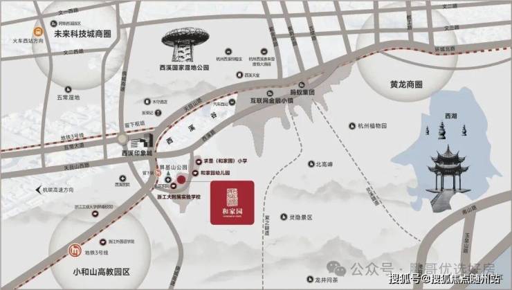 位于杭州西湖区,东接老和山余脉,西邻西溪湿地;距地铁3号线“东岳站”约1.5公里,通过西溪路、天目山快速路10分钟达黄龙商圈、20分钟抵武林中心,繁华与静谧从容切换。