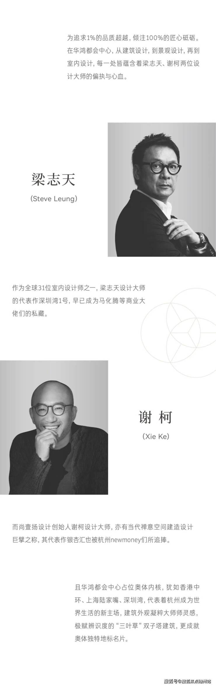 室内设计:大师精工——全球31位室内设计师之一,香港十大顶尖设计师之一,也被誉为中国现代简约之父;《梦想改造家》知名设计师,坚持以“做有诚意、人文的设计”的理念,将具有温暖与关怀的现代东方风格融入设计之中,也具有当代禅意空间建造设计巨擘之称。