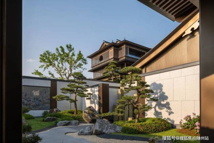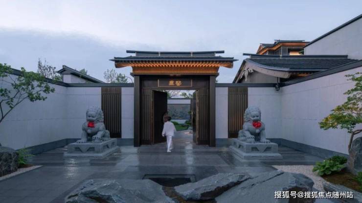 从整个动线布局来看,设计采用了经典的“巷门-院门-宅门”三进制院落格局,以江南院落再现东方传统礼序。从园区巷门开始层层递进,到一户一府的院门,再至入户宅门,表现出大户人家的归家气场,带来一种尊贵秩序的仪式感,也将中式生活的画卷次第展开。