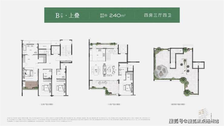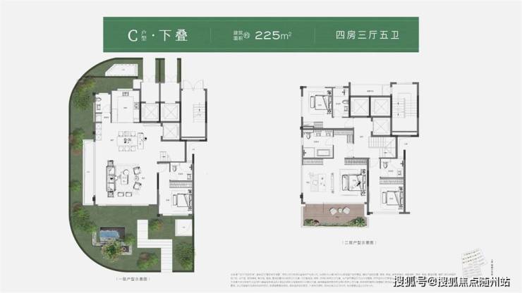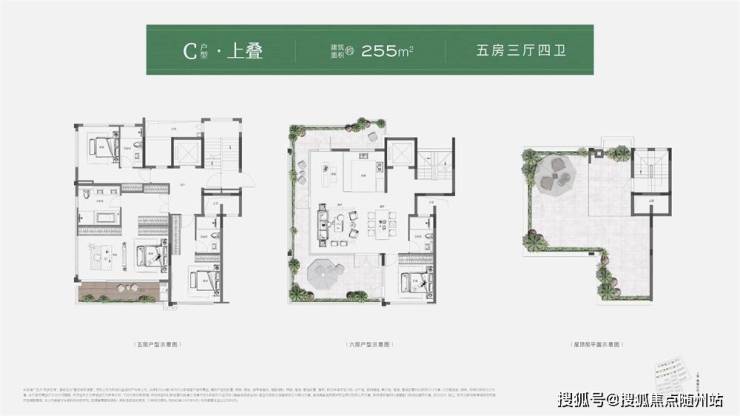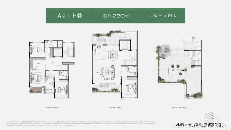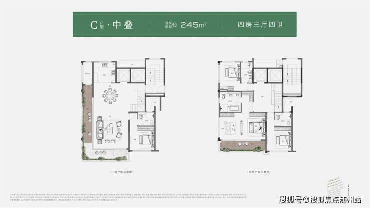如建筑面积约245㎡中叠,创新270°环绕式阳台,包裹餐客厅,将社交厅院落化
