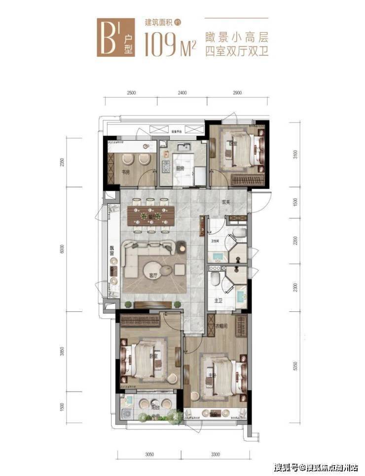 建面约116㎡四房:独立家政间+双套房设计,LDKB一体化厅,匹配改善家庭多元需求。
