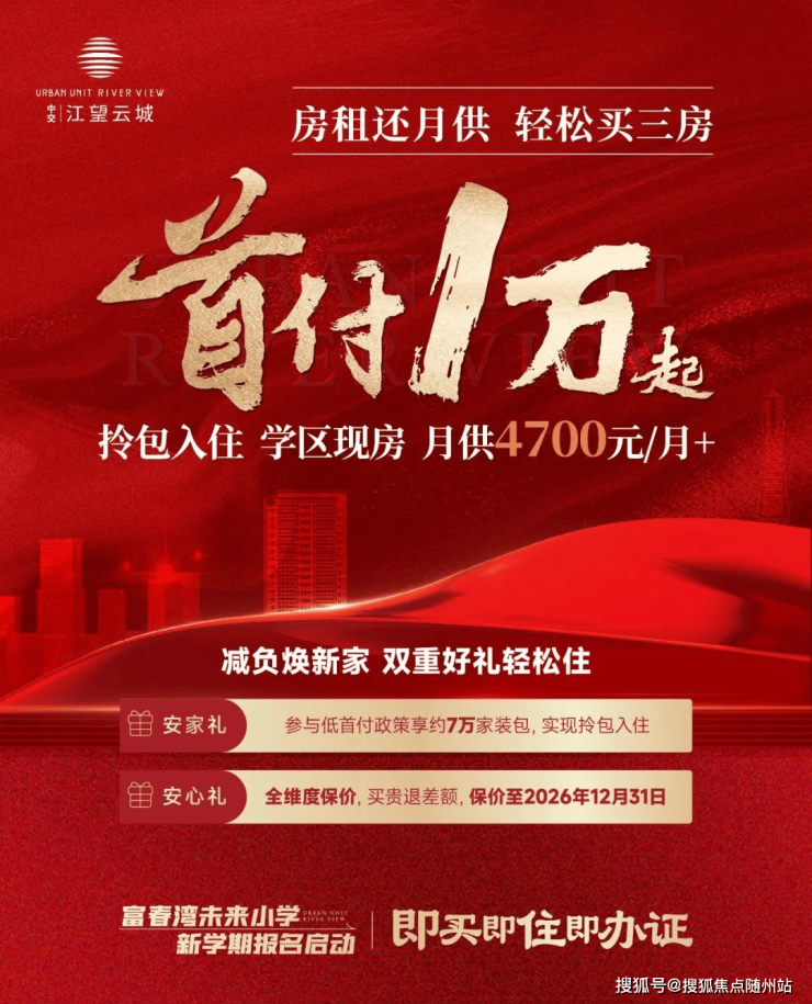 首付1万起即可安家央企现房,月供约4700+元/月起,房租就能抵月供,即买即住即办证,更有“国匠保价”承诺护航:2025年1月1日起认购的客户,保价权益延续至2026年12月31日,买贵退差额,让您安心置业无后顾之忧,理想生活即刻兑现。