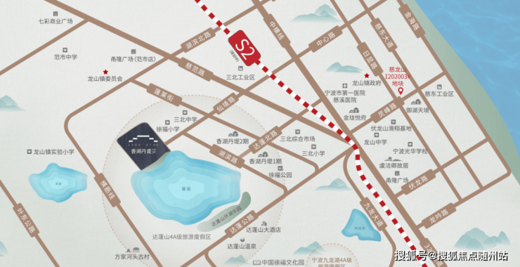 香湖丹堤3期所在的龙山镇,东南紧邻镇海区,从镇海主城开到项目仅约30多分钟;西南又和江北区接壤,同时是慈溪东融宁波的最前沿。