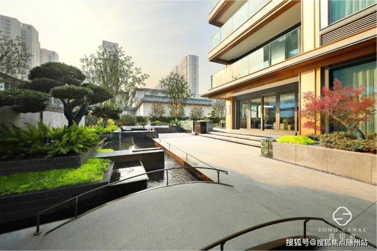 项目择址新塘河与官河双水脉交汇处,打造三面环水的半岛低密住区。示范区以宋代园林为灵感,坡顶飞檐、青松格栅再现东方隐奢意境,泛会所、滨水公园等配套构建“可游可赏”的诗意场景。下楼即达约1.5公里滨水绿道,晨跑观水、夜赏星河,都市繁华与自然谧境自由切换。