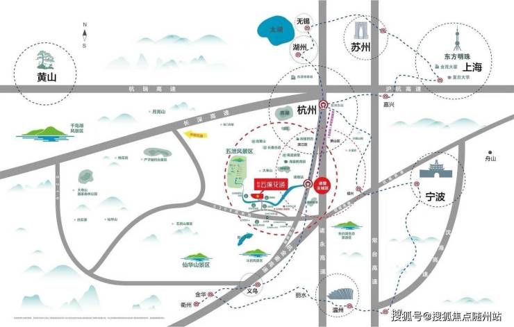 朗臻·云溪花语的区位价值,首当其冲是“融杭同城”的战略优势。项目坐落于诸暨城东核心区域,北接杭州都市圈的辐射带,南连诸暨老城区的成熟配套,是连接“杭绍同城”与“诸暨城心”的关键节点。