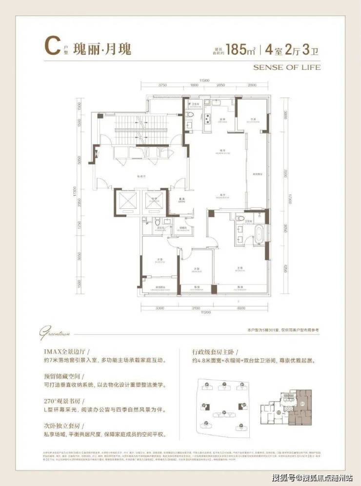 建面约185方户型,高品质的寰景奢宅: