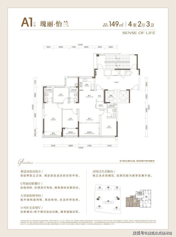建面约149方户型,高配入门款改善选手: