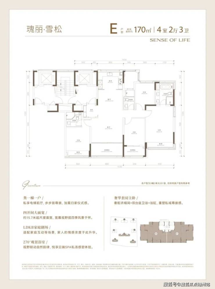 建面约170方户型,高质价比的四房优选: