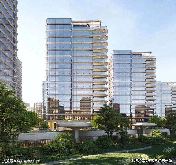 外立面采用弧线转角阳台+蓝灰色钢化LOW-E玻璃,公建化立面拥有超高窗墙比。同时,大量曲线元素的运用,不仅造价昂贵,而且极具辨识度,成为区域的颜值担当。