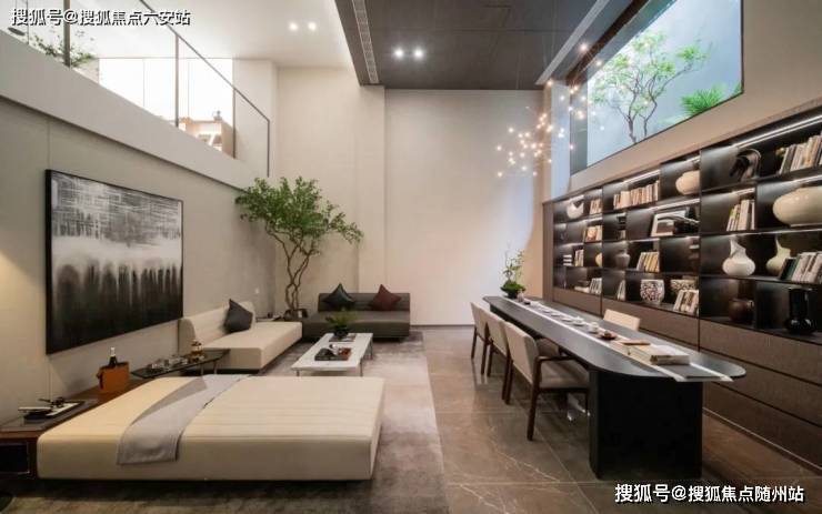 而自北门归家,穿过开阔的入户空间,华夏阳光独具特色“四水归堂”会客厅便映入眼帘,礼序感直接拉满。