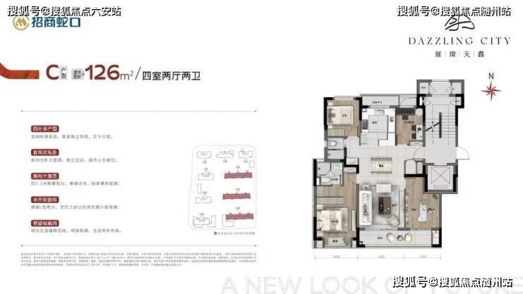 强者愈强,璀璨天鑫对精装标准和空间尺度的进阶也是一骑绝尘,轻松撩起不少人的购买欲。特别是建面约126m²精质洋房,经典四叶草户型,拥有4室2厅2卫,整个户型的隐私性较好。