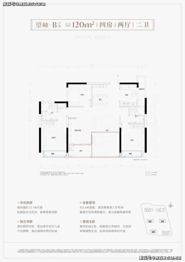 建面约120方户型: