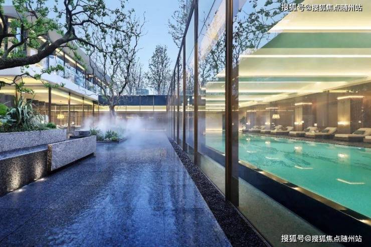 夜幕降临时,镶嵌在下沉式庭院里的室内恒温泳池,像是一个巨大的玉匣,同样散发着迷人的光芒。当你畅游在这秋水澄流中,你又变成了「琳琅珠玉」的写照。