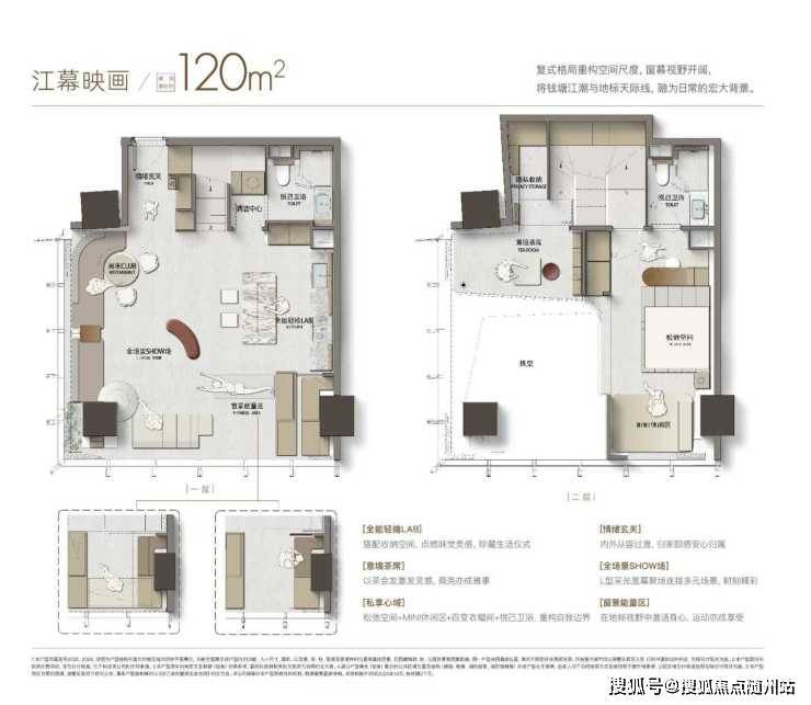 江幕映画:B户型建筑面积约120㎡,都市自然风,都会精奢感×自然治愈力