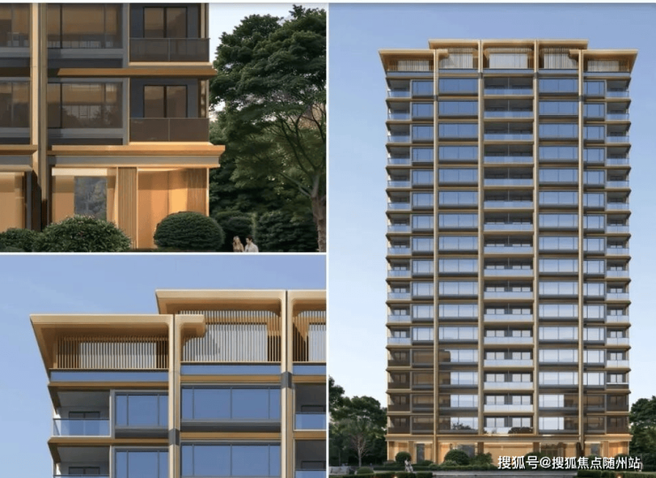 【外立面】四面铝板+玻璃幕墙+部分石材(交付前封包阳台)