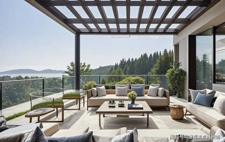 最大约30㎡转角环景露台,外挑结构塑造270°环幕视野,以轻量化设计实现空间溢价;极窄边框玻璃栏板消解视觉阻隔,让成本隐于无形,唯留风景入室。