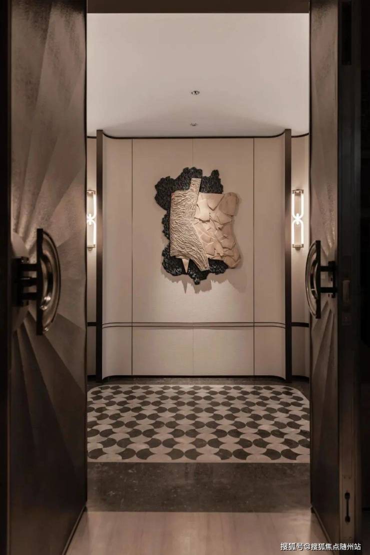 260㎡的样板房,近10万一扇的双开3D雕刻装甲门,历经25次选样;定制四合一智能锁。