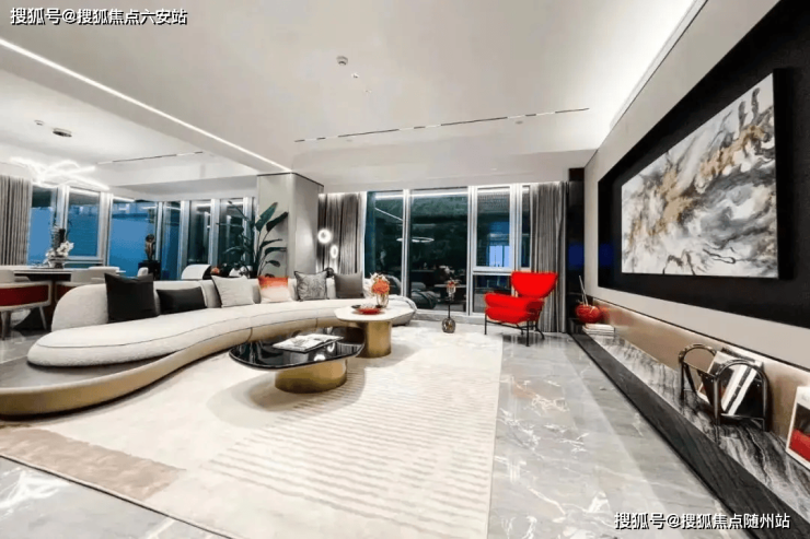 建筑风格:采用现代简约风格,立面以铝板和窗墙系统为主,南立面玻璃面占比近90%,犹如银瀑倾泻,展现现代极简审美。