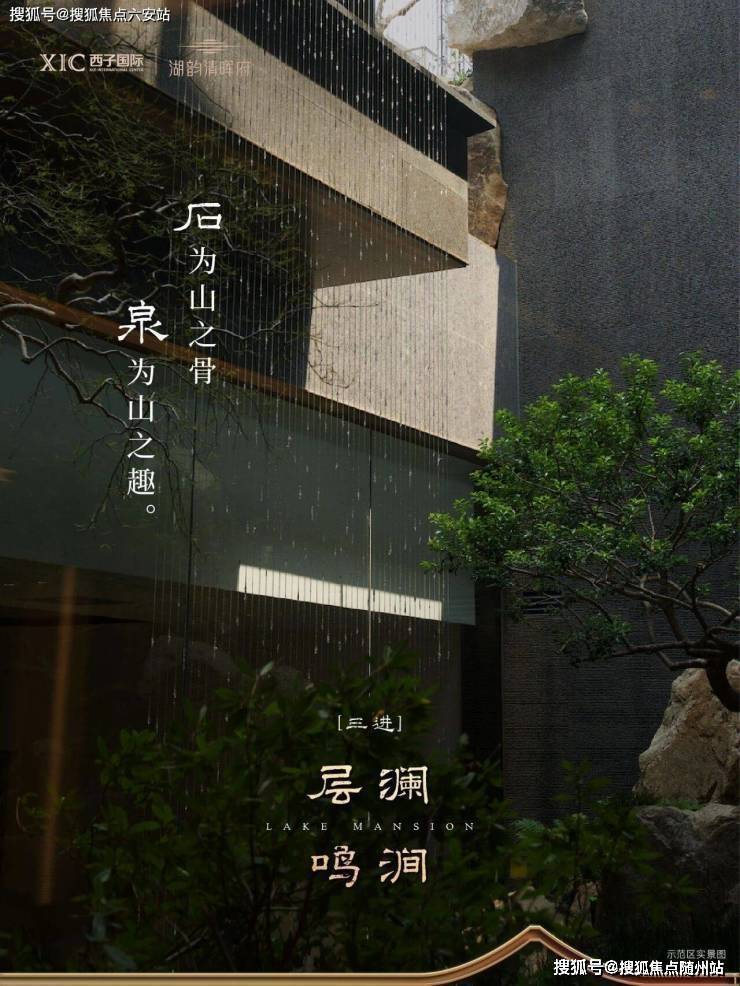 造园有法 园林设计· “一轴两苑八景山水花园九巷”,层层递进,·借东沙湖景,引水入园,叠山环水,构成江南水乡的居住意境。· 师法郭庄,独创“五进式”东方礼序空间。· 用心甄选素有“松之王”之称的珍品级黑松。· 巨峰飞瀑如银河倾泻,消弭外界喧嚣,归家心境豁然开朗。· 以中央水苑为心、连廊为轴,串联起一方赏月胜地。· 规划“两街九巷”形制,并独创约6.5m超宽街巷。