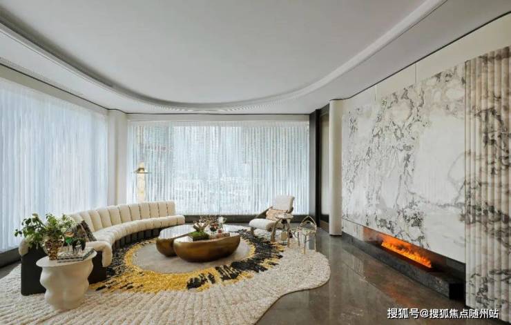 整体设计风格以浅白色为主,客厅背景墙贴着大面积「芬迪白大理石」,弧形的造型配合木饰面,以及酒店级的灯光设计,让整个空间看起来奢华又不失温馨。杭州奥体◆围合式大平层◆T-ONE潮博🔻售楼热线:☎ 400 832 8823「售楼处」☎〢网上售楼中心〢🔻