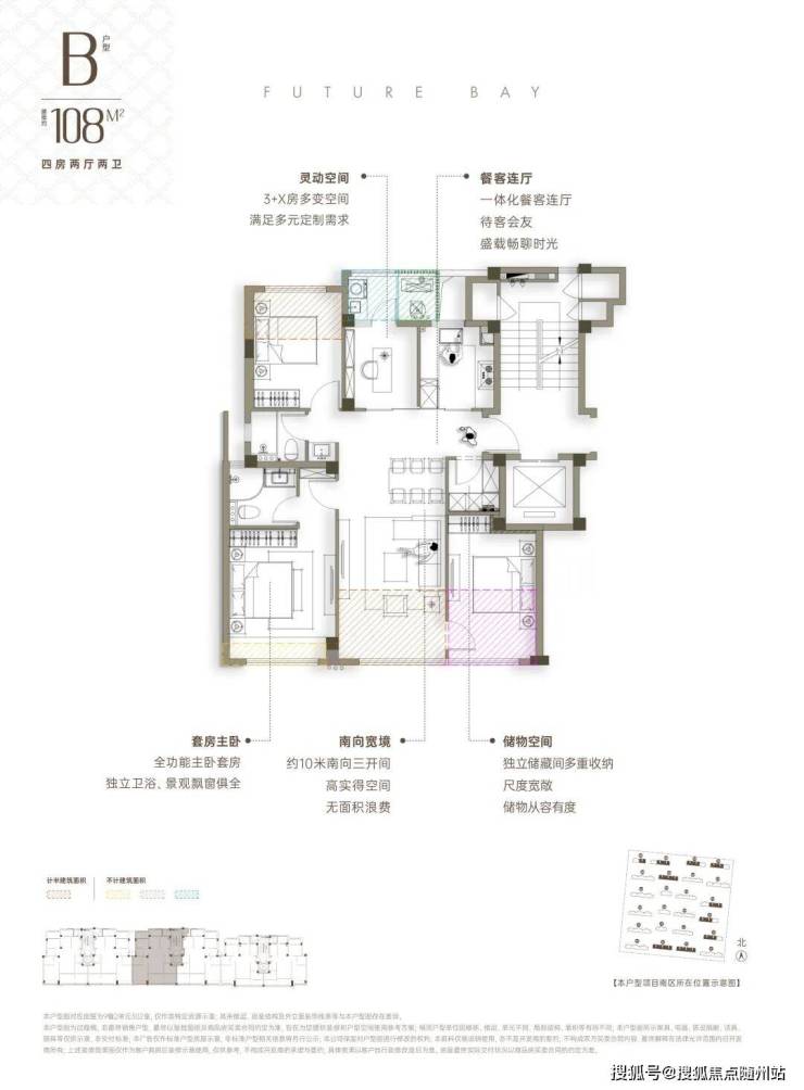 ◎约108㎡:3+1房两厅两卫,空间零浪费,餐客厅进深约8米,同样带储藏间。