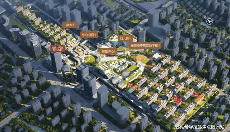 还有九年一贯制的学校及层层退台设计的邻里中心。前者将由保俶塔申花实验学校领办(期房不承诺学区)。后者则包含了泳池、农贸市场、文化活动中心、剧场、健身中心、社区服务中心等功能。