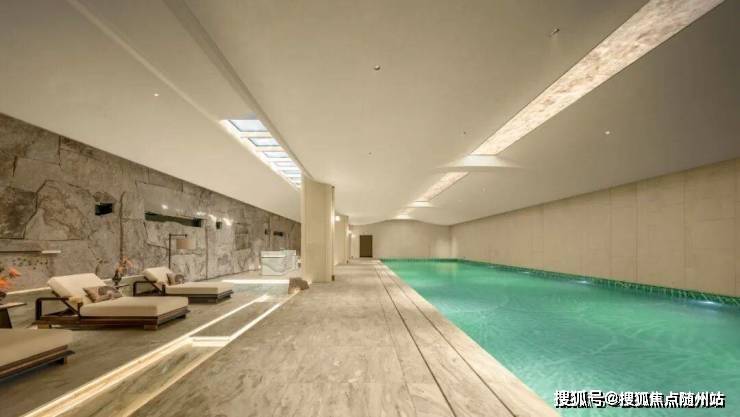 运河樾的恒温泳池更是别具一格。灵感取自刘松年笔下的《四景山水图》,泳池墙面覆以精选的黄锈石老石皮,以粗犷的肌理模拟山岩的嶙峋,充满野趣。休息区玻璃天花板上汩汩流淌的,是园中溪水。池底的荧光石马赛克在漆黑的夜晚会发光,就像满天星斗。一个游泳池也能营造出如此丰富的意境,宛若梦中的江南水乡。
