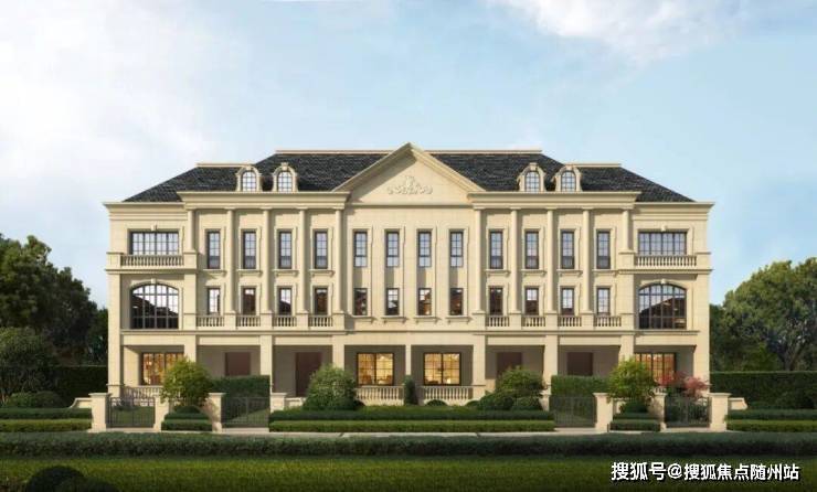 联排建筑的设计,融合了中国传统院落布局与法国枫丹白露宫的审美外立面大面积采用全石材干挂,檐口等细节部位使用仿石。