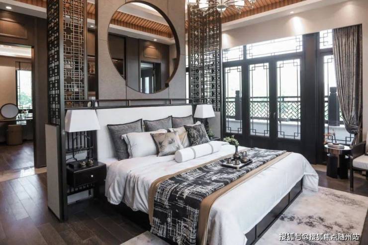 以建面约170㎡中式合院为例,南入的这处庭院位于前庭,回到家第一眼便是小桥流水,一楼餐客厅分离式布局,娱乐就餐两不误;老人房朝南设计不仅踏实接地气,还能直面小院品味多彩时光。