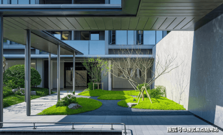 水景庭院,雍享近700方的水域;风雨连廊,连接着建筑架空层,不止形成园区无雨化归家设计,更让丰富的主题生活内容空间,成为可能。