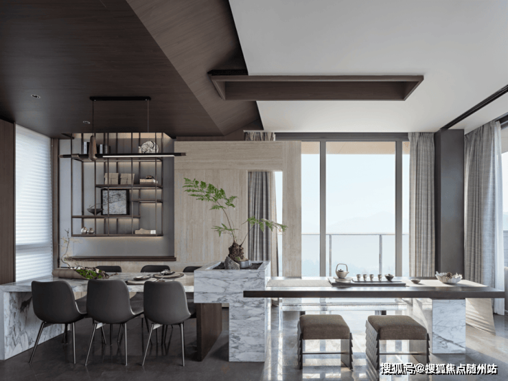立面革新:玻璃占比超60%,搭配人造石材,耗资百万定制秘色瓷屏风