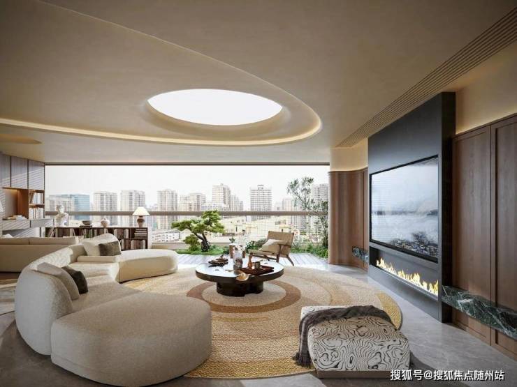 【挑空客厅 · 光的容器】:大落地窗+挑空设计,是户型的灵魂,没有一丝压抑感