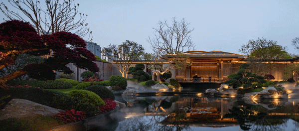 归家之路沉浸于满满的中式园林美学。二进·云聚漫咖,汲取京都安缦酒店设计灵感,融合燕尾榫地砖、鱼鳞纹、竹节纹等传统古建元素,打造遇建咖啡休闲庭院空间。三进·云映汀水,三进空间同样采用了诗意洄游的动线方式,以微察妥思的设计构建度假感,创造的空灵广博的人居空间。