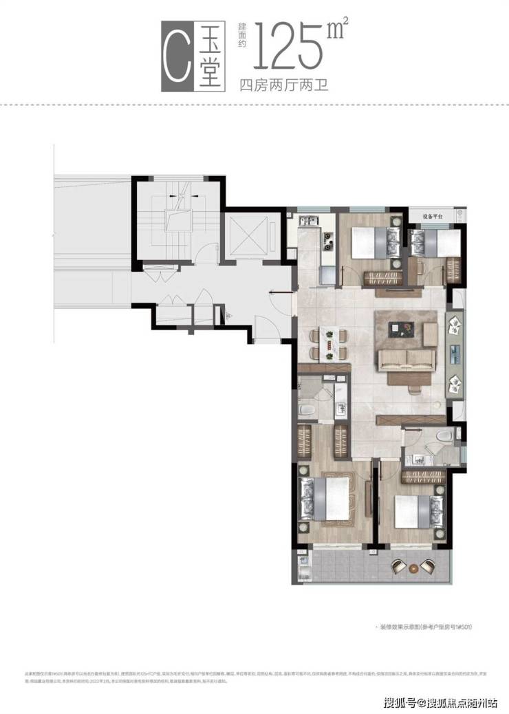 C户型 建面约125㎡装修示范单位(4#301)