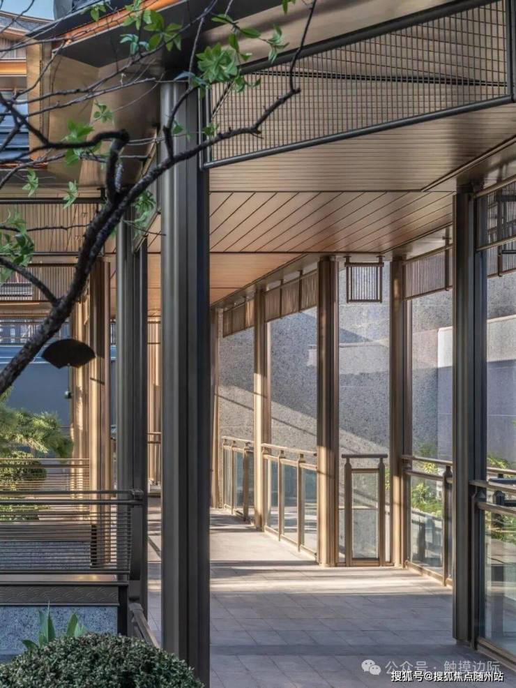 公区外立面取意于形、会意于神。设计师将住区主要入口以不对称的曲面坡顶统领全局,在捕捉宋代屋顶的灵动气韵的同时,亦暗合钱塘江潮的韵律。提炼中式建筑椽头、山花等元素,以现代设计语言重构,纤毫毕现。既延续传统形制意趣,又赋予其现代建筑的简洁张力