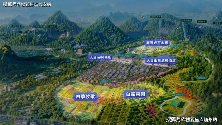 项目总占地900多亩,规划有英迪格酒店、天目in66商业街、自然探索乐园、耕心农场、自在果园、唐风合院、暖驿社区等复合功能配套,为业主提供丰富的生活场景和度假体验。