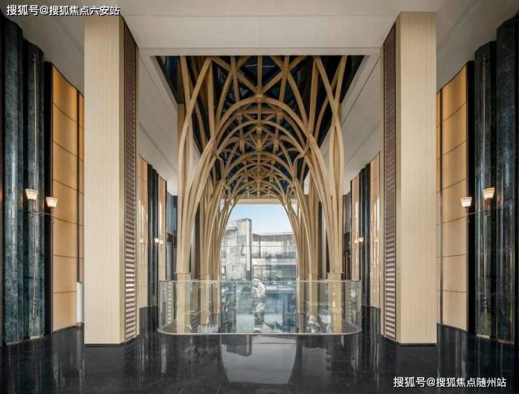 整个会所突破性地做了三层观景式设计,形成下沉式庭院+檐下游廊+亭台楼阁的立体格局,整体高差达15米,置身其中,蔚为壮观。